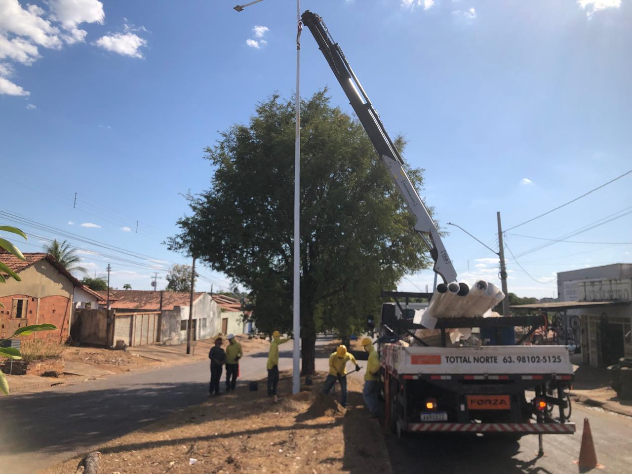 A Prefeitura de Palmas, por meio da Secretaria de Infraestrutura e Obras Públicas (Seiop), deu início ao projeto de eficiência energética na Avenida Goiás, no Jardim Aureny II, região sul da Capital. A ação faz parte do compromisso da gestão municipal em modernizar a iluminação pública da cidade e contempla a instalação de 23 postes com 46 luminárias de tecnologia LED distribuídas ao longo do canteiro central da avenida.