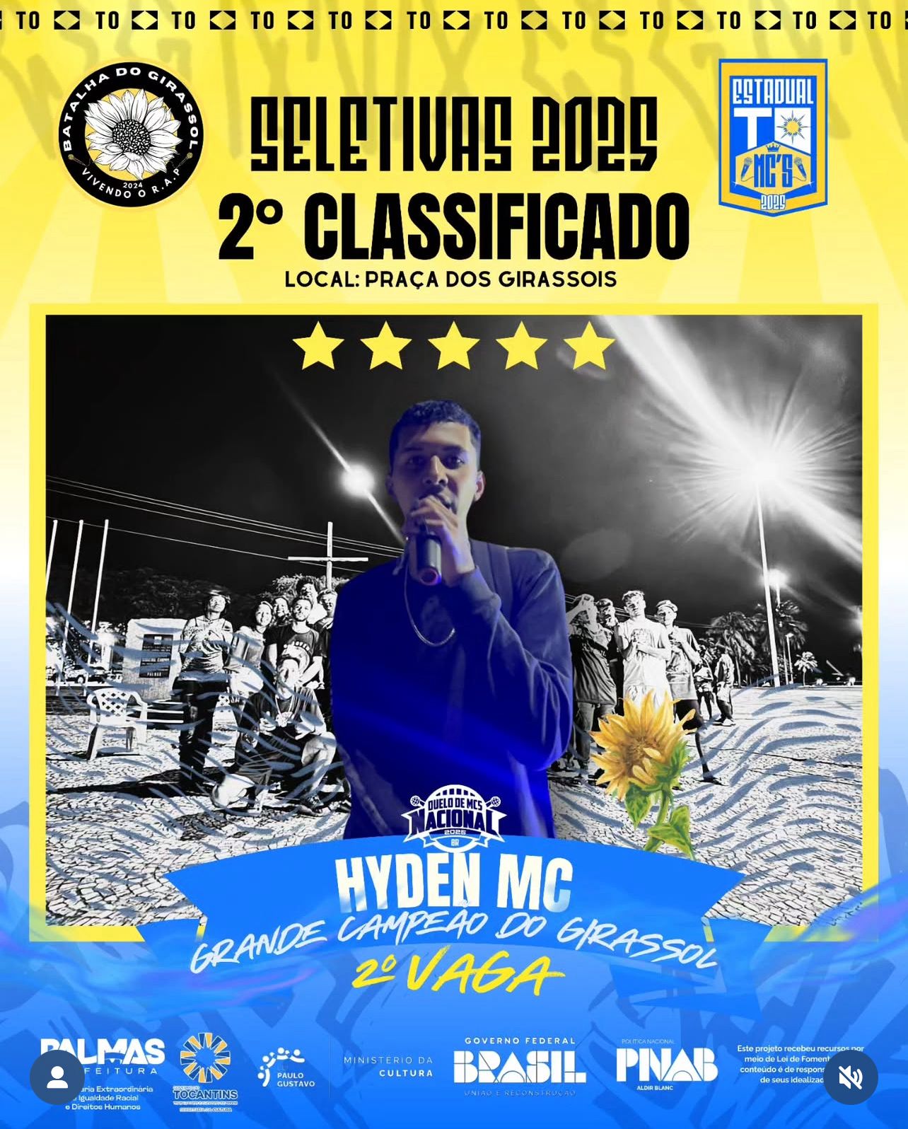 - Hyden MC - 2ª Seletiva – Batalha do Girassol, na Praça dos Girassóis (Palmas) 14/06