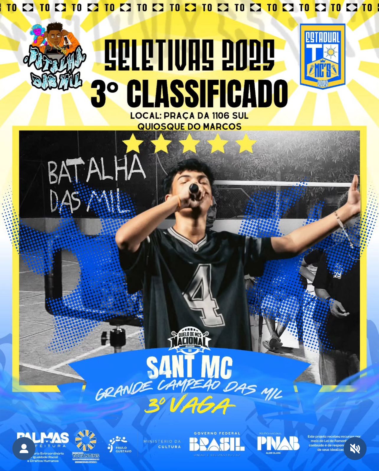 - MC S4nt - 3ª Seletiva – Batalha das Mil, na Praça da 1.106 Sul (Palmas) 26/06