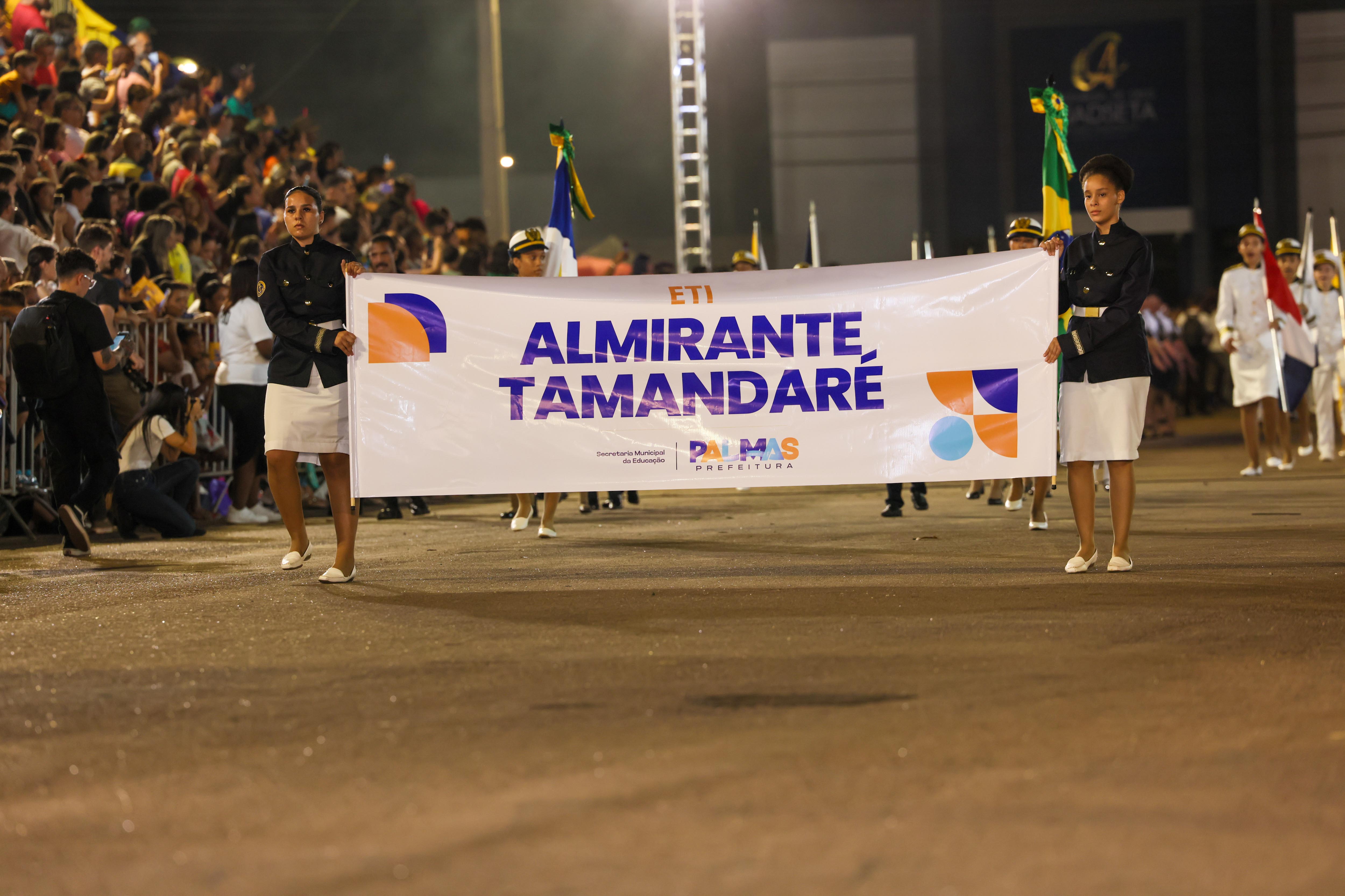 Encerrando a participação das escolas municipais, a ETI Almirante Tamandaré, que conta com a parceira da Marinha do Brasil, trouxe, no pelotão de frente, uma ala empunhando as bandeiras Nacional, do Estado do Tocantins e da Capital, Palmas. Os demais pelotões e a fanfarra encantaram o público. A escola finalizou o desfile com sete crianças representando os ex-prefeitos e ex-prefeitas, sendo uma delas Gael Siqueira Campos, filho do atual prefeito Eduardo Siqueira Campos.