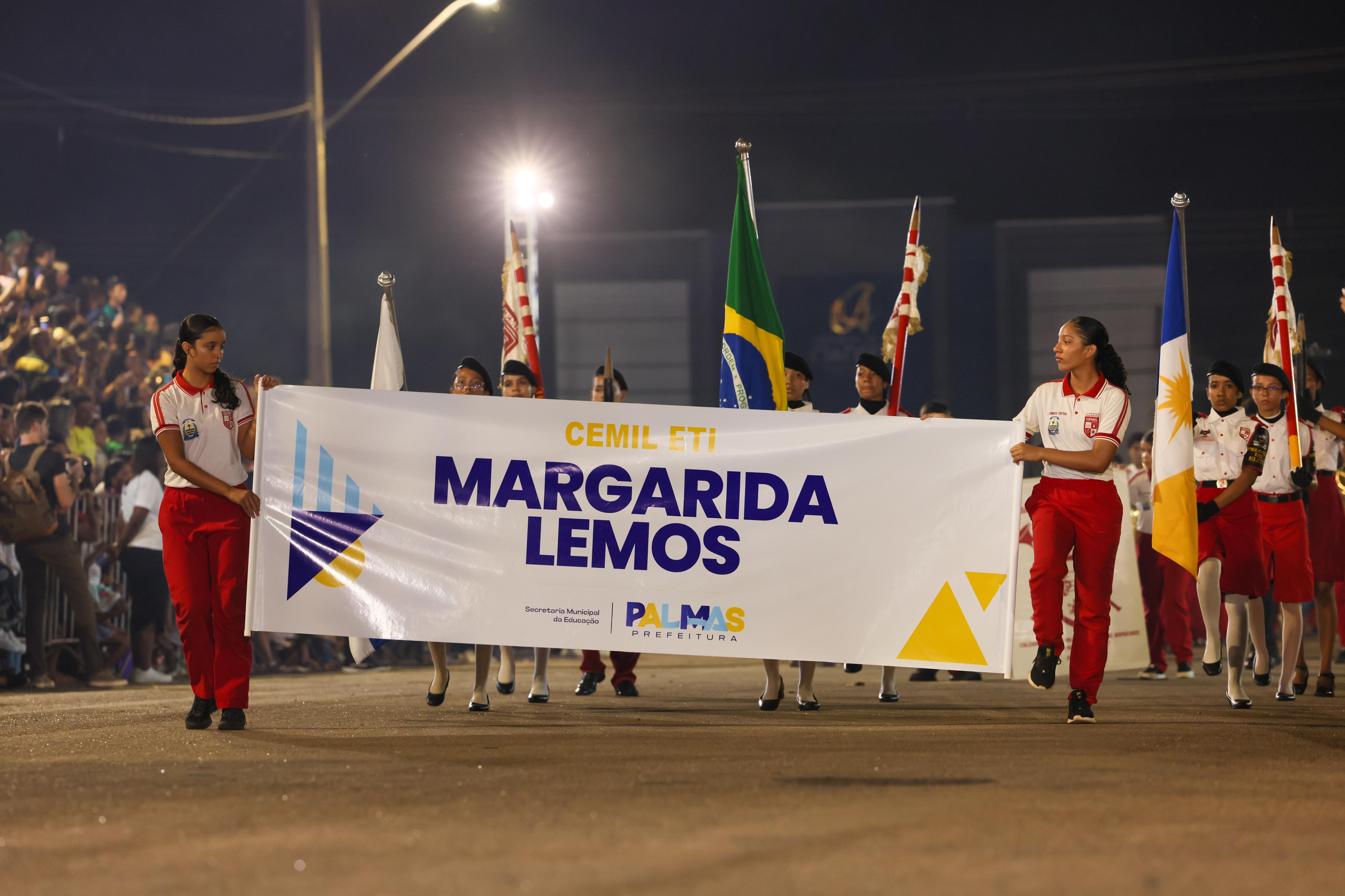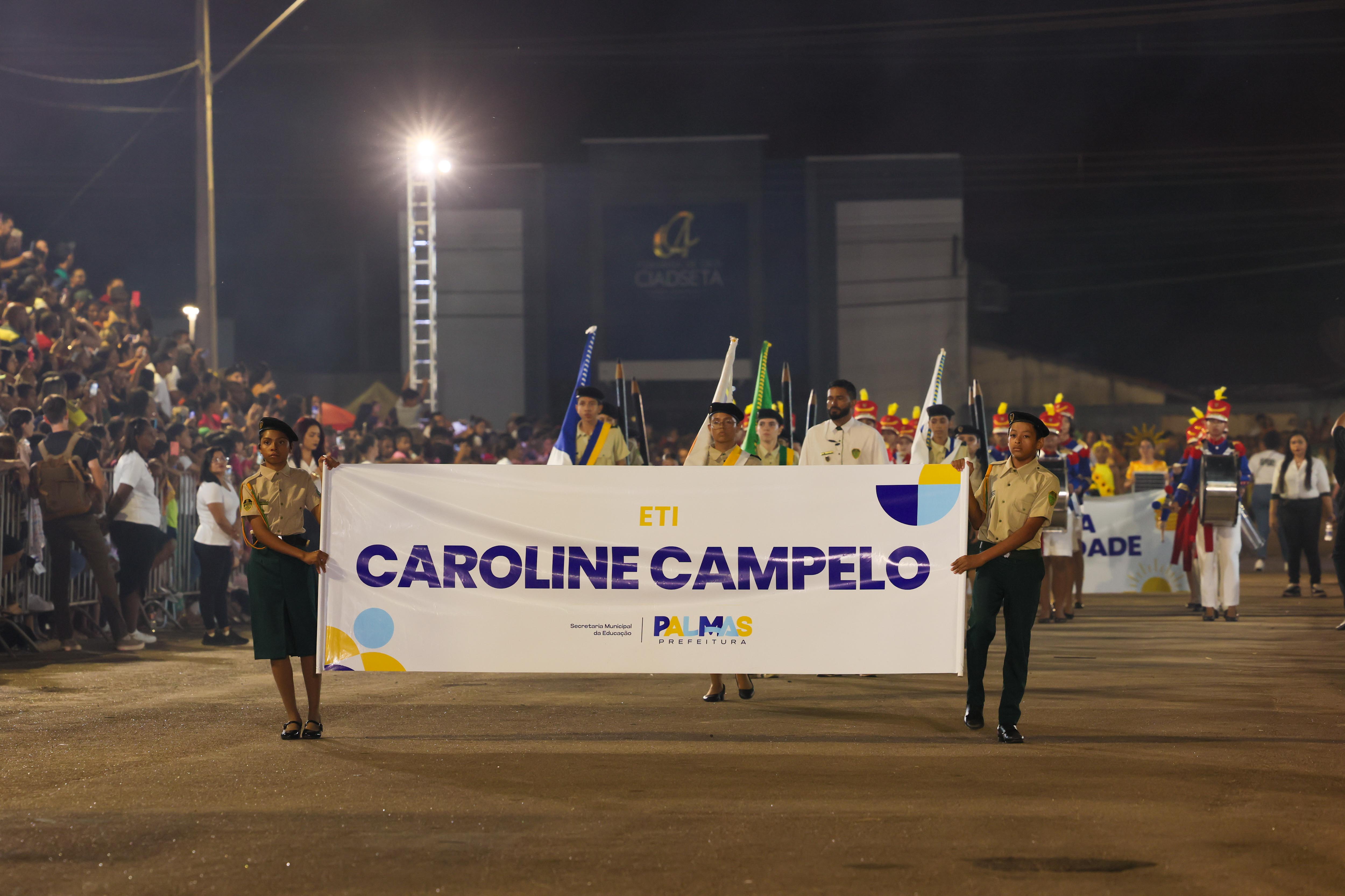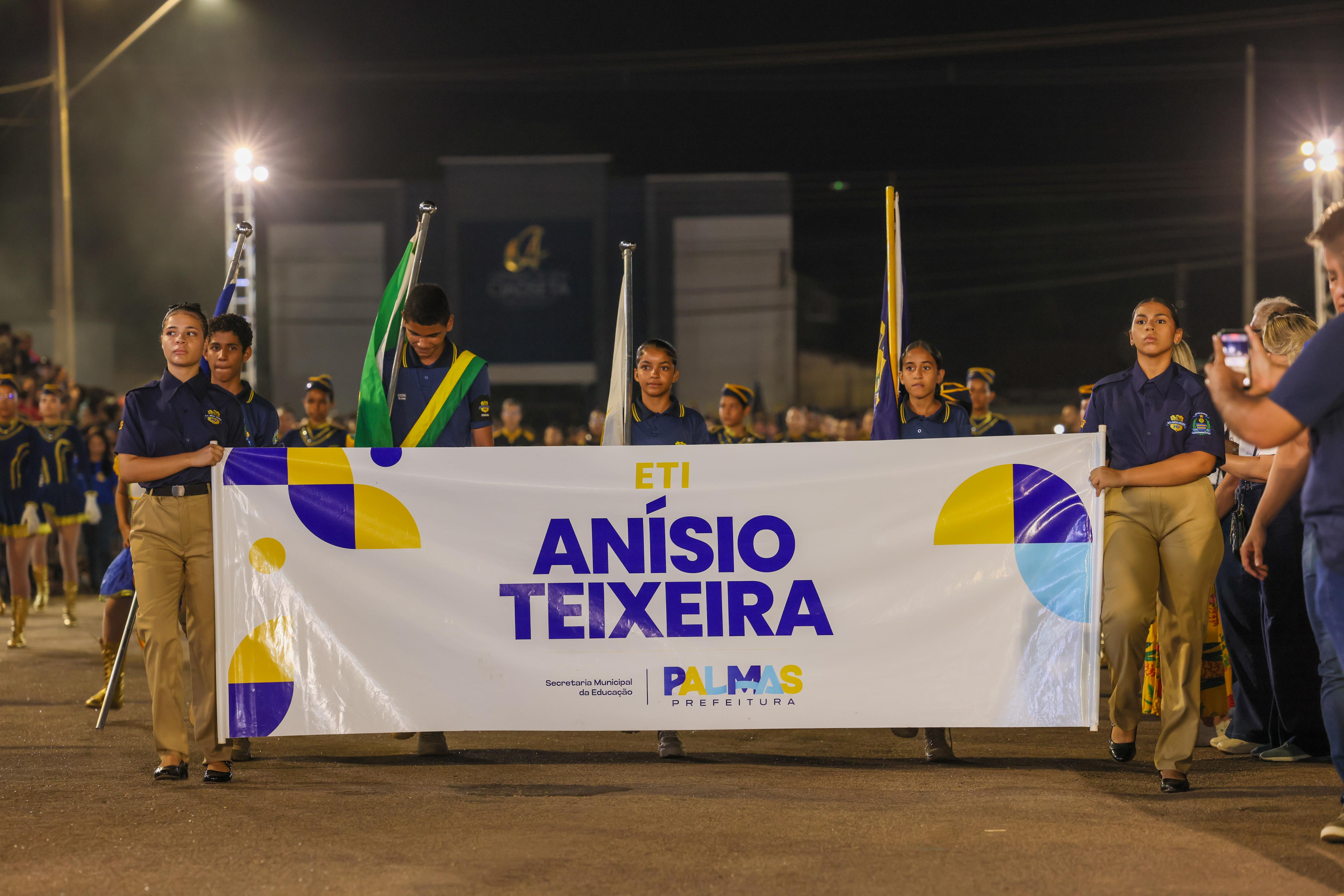 Em seguida, desfilaram os alunos da ETI Caroline Campelo, que possui parceria com o Exército Brasileiro; a ETI Margarida Lemos, que possui parceria com o Corpo de Bombeiros Militar, com o tema “Palmas do futuro: juventude, esporte, inovação e sustentabilidade”, ilustrado em quatro pelotões; e a ETI Anísio Teixeira, parceira da Polícia Rodoviária Federal (PRF), com 218 alunos divididos em seis pelotões, com o tema “Palmas vai viver os melhores dias de sua história: ala que expressa o quanto Palmas vai crescer”, fazendo alusão ao processo educacional que torna a cidade referência em educação.
