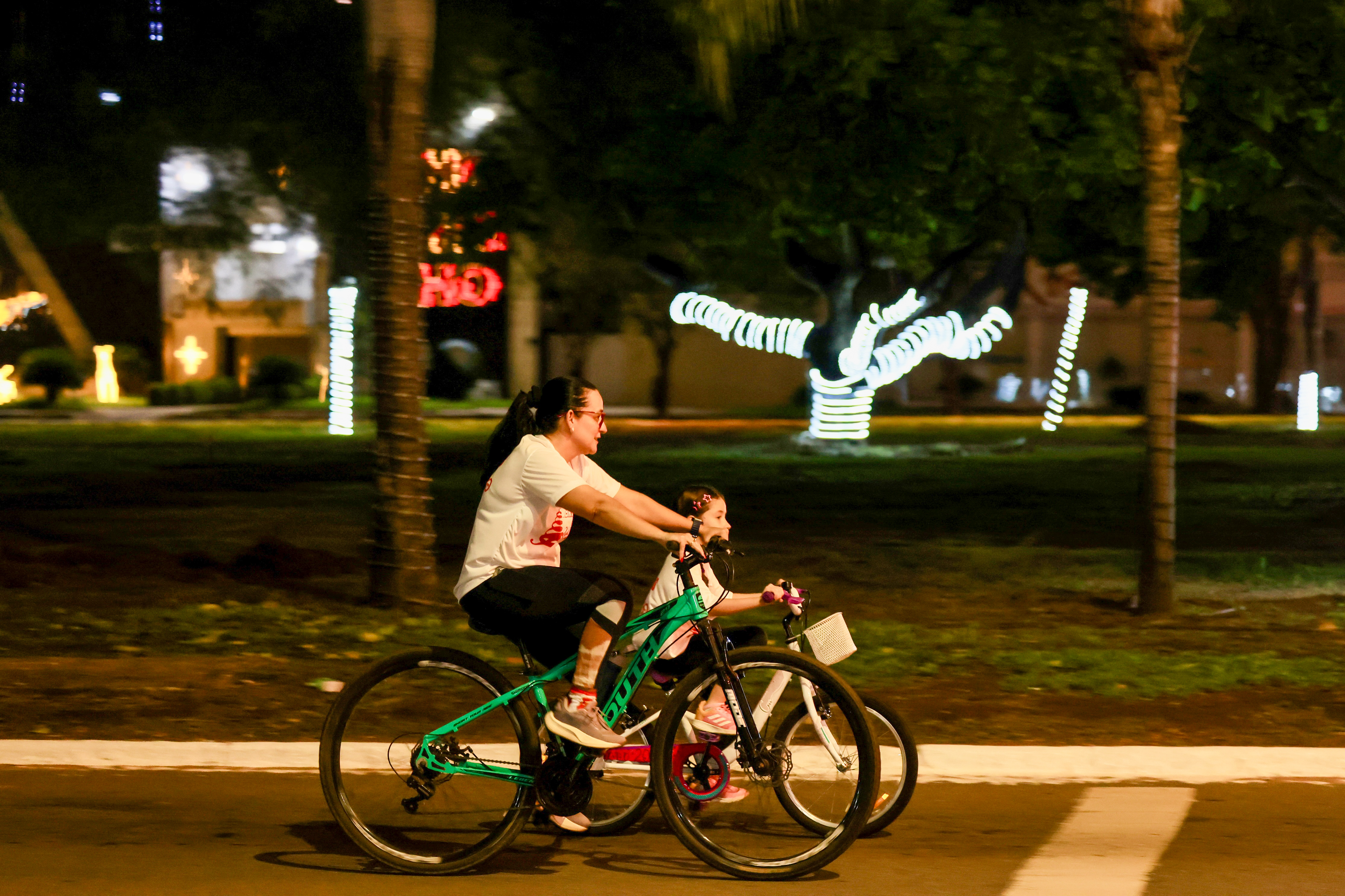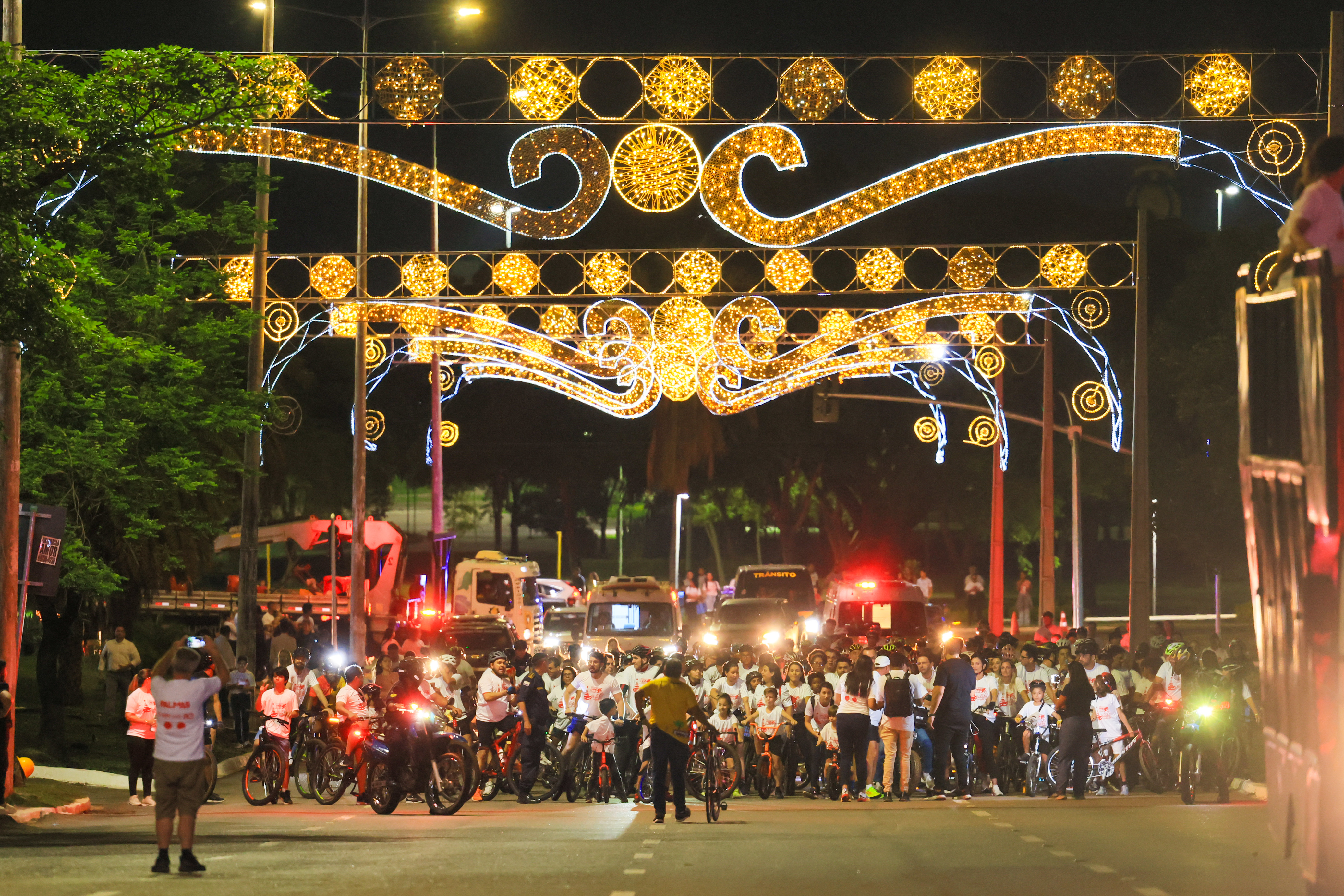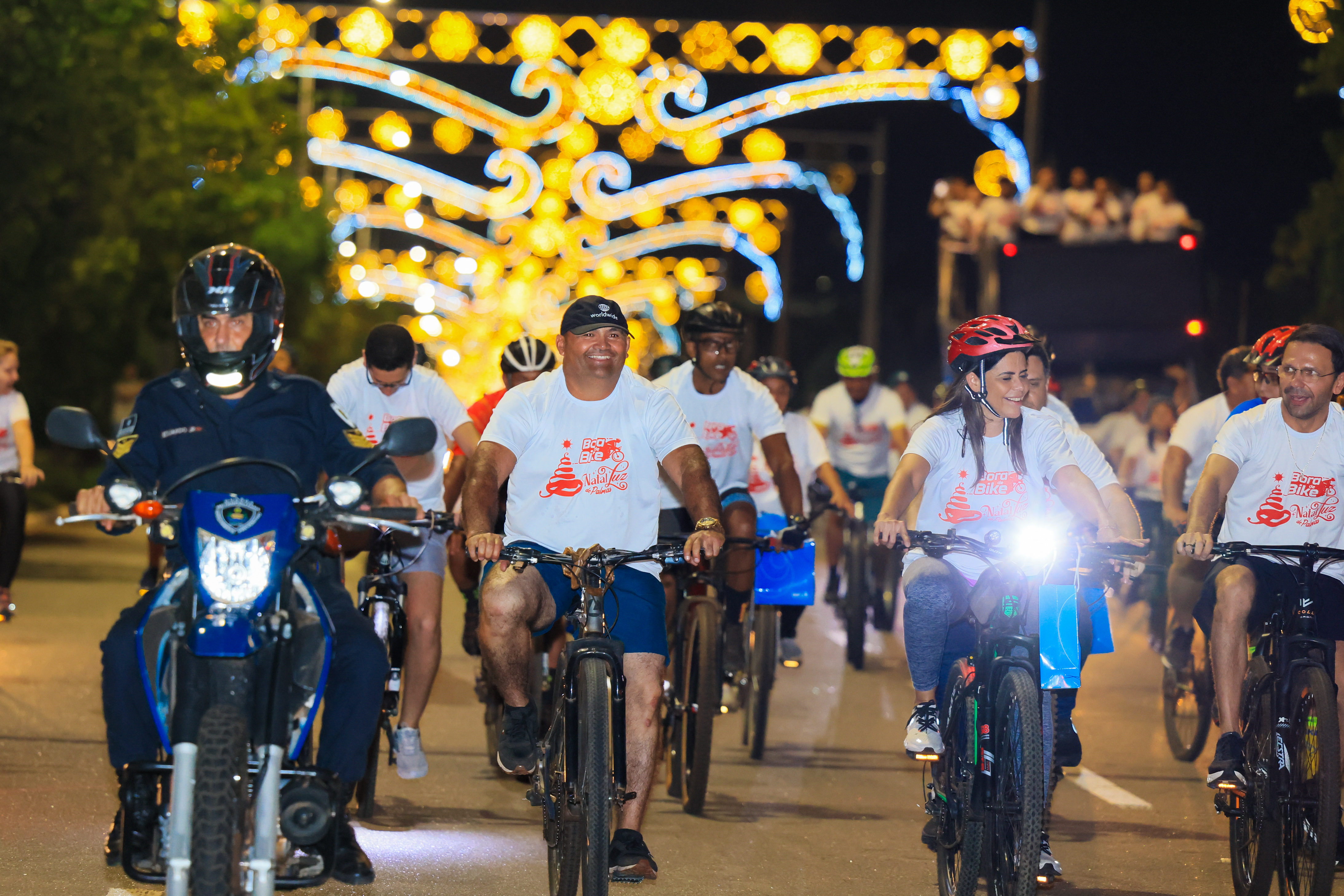 A cidade de Palmas abriu oficialmente, nesta sexta-feira, 5, a programação do Natal Luz 2025. O acendimento das luzes natalinas foi conduzido pelo prefeito Eduardo Siqueira Campos, durante o passeio ciclístico ‘Bora de Bike’. A concentração ocorreu no Memorial Coluna Prestes, na Praça dos Girassóis, reunindo mais de 800 ciclistas, famílias e servidores municipais. De lá, o grupo percorreu aproximadamente 4,3 km até o Bosque dos Pioneiros pela Avenida Siqueira Campos.