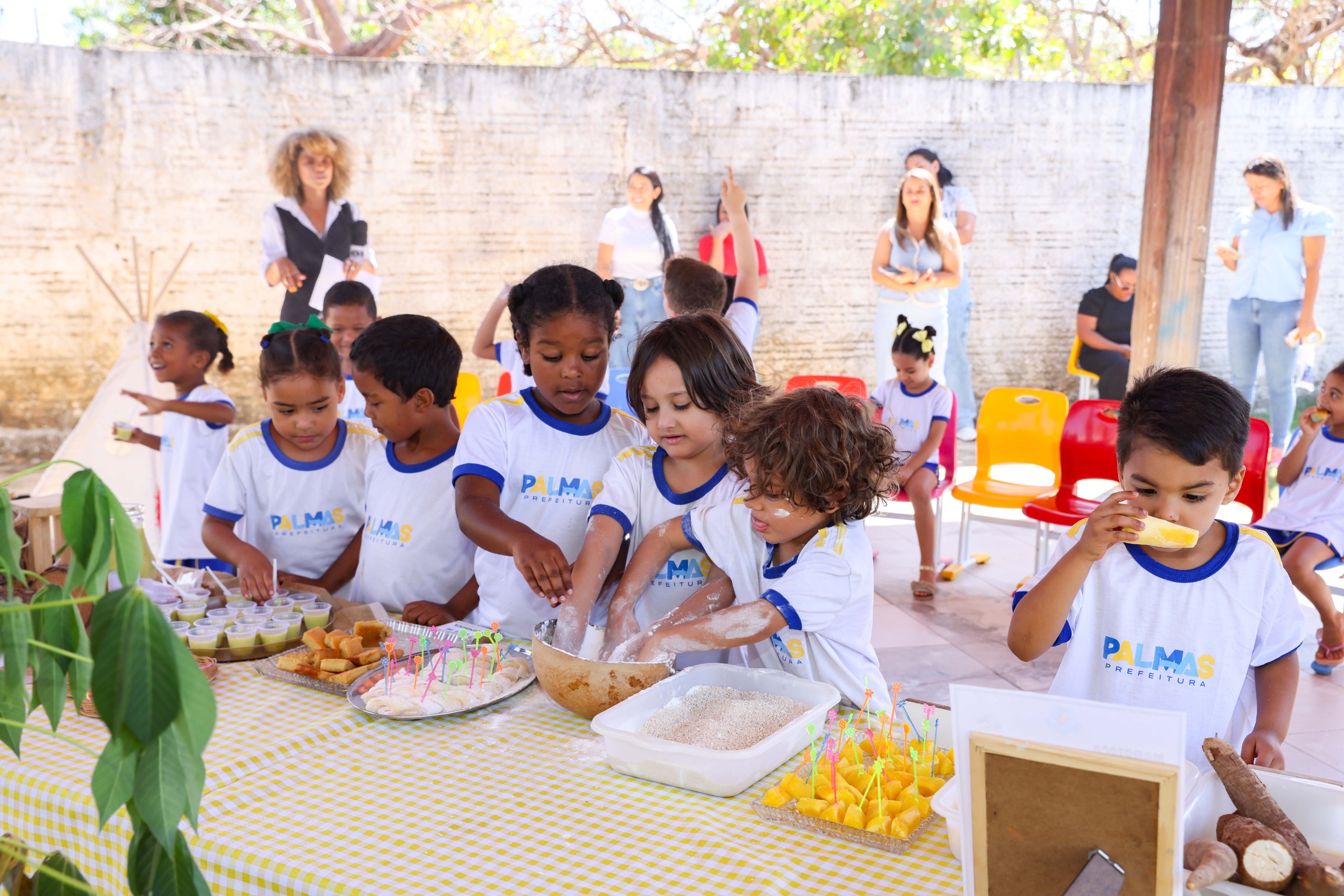 Os Centros Municipais de Educação Infantil (Cmeis) de Palmas estão realizando atividades variadas durante a “Semana do Comer” para fortalecer o vínculo das crianças com a cultura alimentar local e incentivar a exploração de novos sabores e texturas. Segundo a Secretaria Municipal da Educação (Semed), nesta quinta-feira, 28, o Cmei Paraíso Infantil, localizado no setor Bela Vista, realizou uma atividade especial para as turmas da Pré-Escola I.