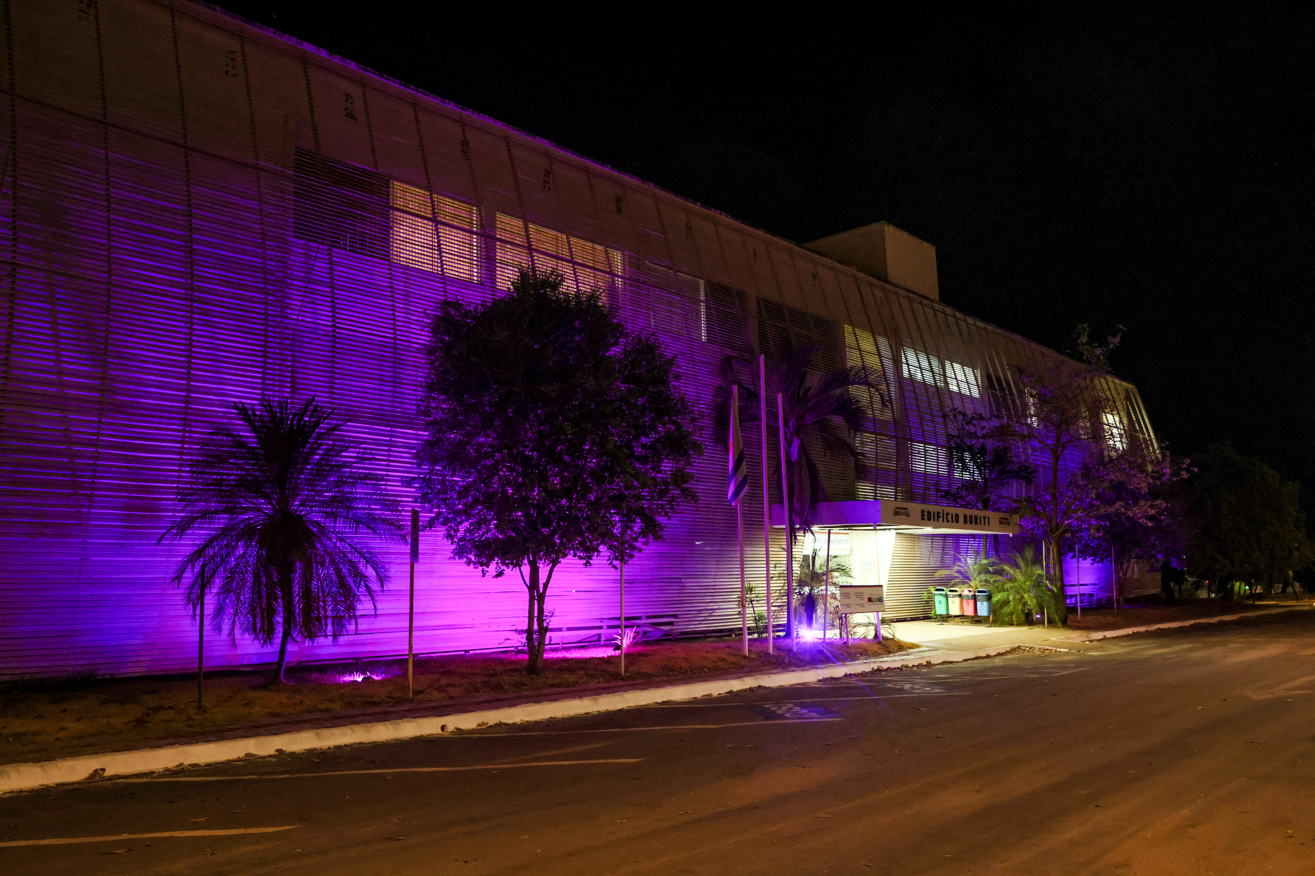 A Prefeitura de Palmas, por meio da Secretaria de Infraestrutura e Obras Públicas (Seiop), iluminou os prédios públicos na cor lilás, em alusão à campanha Agosto Lilás, mês dedicado à conscientização e ao combate à violência contra a mulher. A iniciativa tem como objetivo chamar a atenção e sensibilizar a sociedade no engajamento pelo rompimento do ciclo de violência contra a mulher.