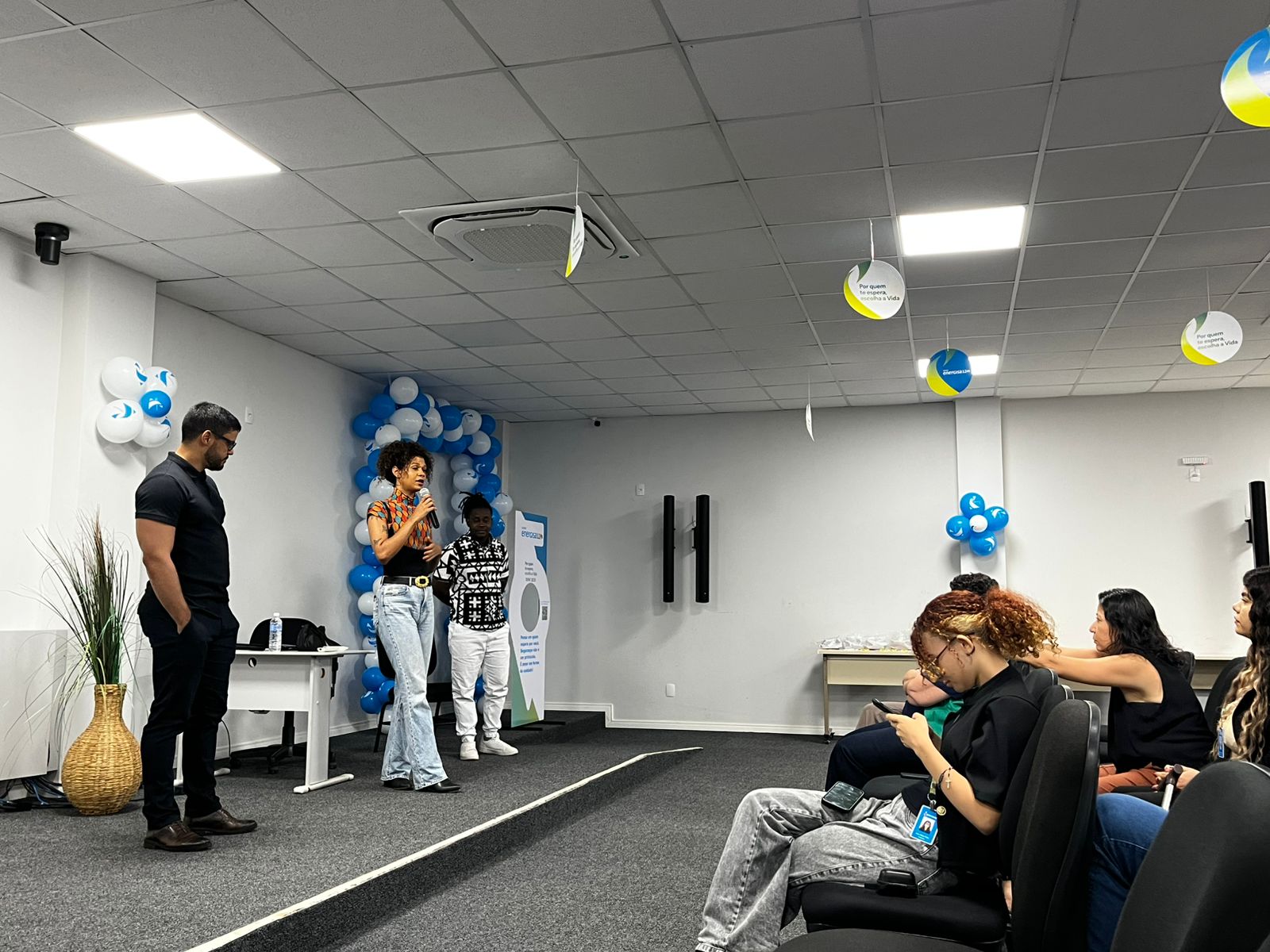 Na manhã desta quarta-feira, 3, a Prefeitura de Palmas, por meio da Secretaria Extraordinária da Igualdade Racial e Direitos Humanos (Seirdh), realizou a palestra “Respeito que une, diversidade que fortalece” para trabalhadores da Energisa Tocantins. A atividade integra a Semana Interna de Prevenção a Acidentes de Trabalho (Sipat), promovida pela empresa. O titular da Seirdh, José Eduardo de Azevedo, conduziu a atividade, que contou com a colaboração da servidora da Seirdh Wanda Citó e do coordenador do Projeto África em Nós, Aires Panda.