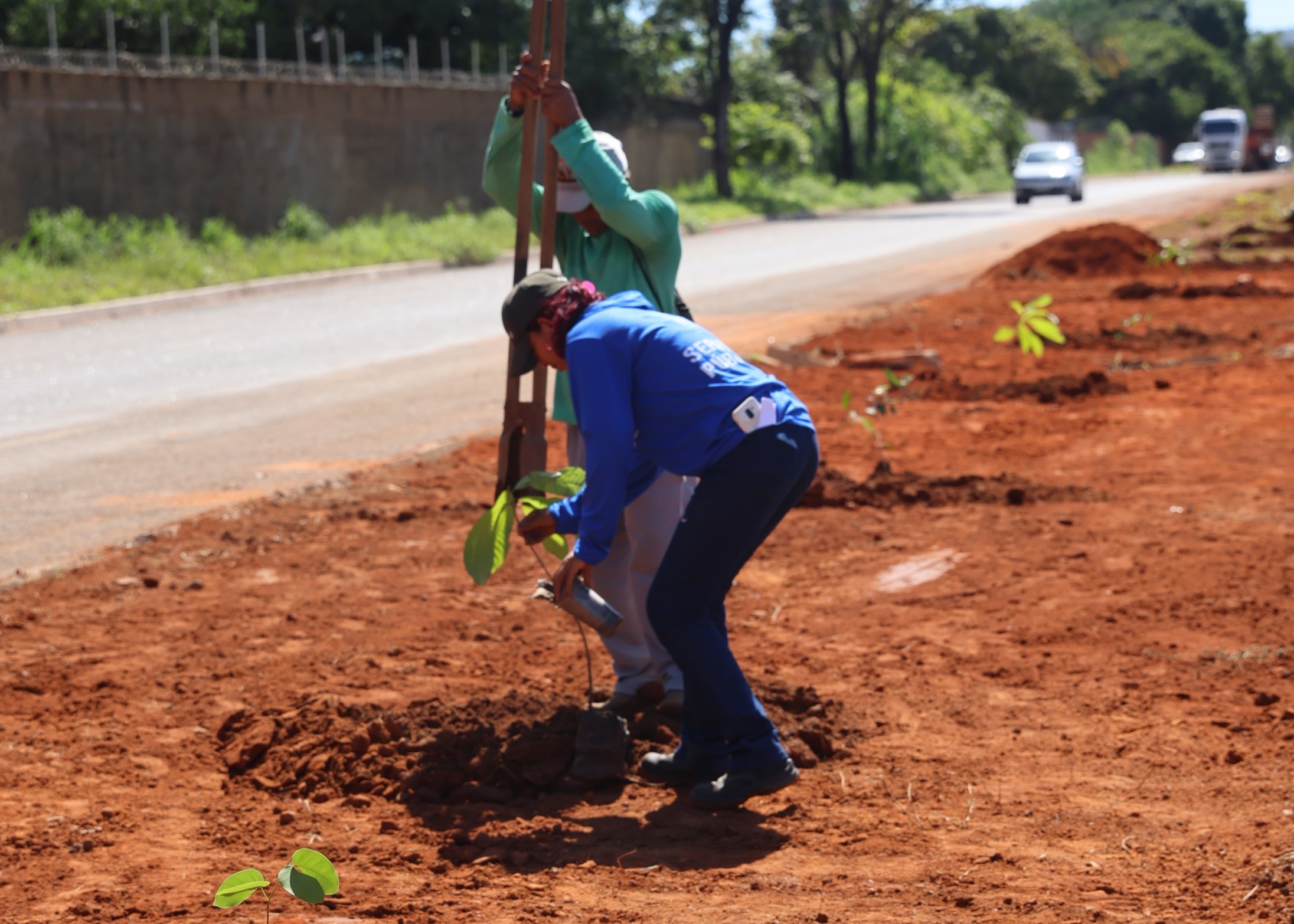 A Avenida LO-15 está passando por uma remodelação. É que equipes da Secretaria Municipal de Infraestrutura e Serviços Públicos (Seisp) estão trabalhando na implantação do paisagismo no canteiro central da via, com o plantio de gramas e mudas de árvores nativas do Cerrado, espécies especialmente selecionadas por sua resistência ao clima da cidade, que irão contribuir também para a preservação da biodiversidade da região.