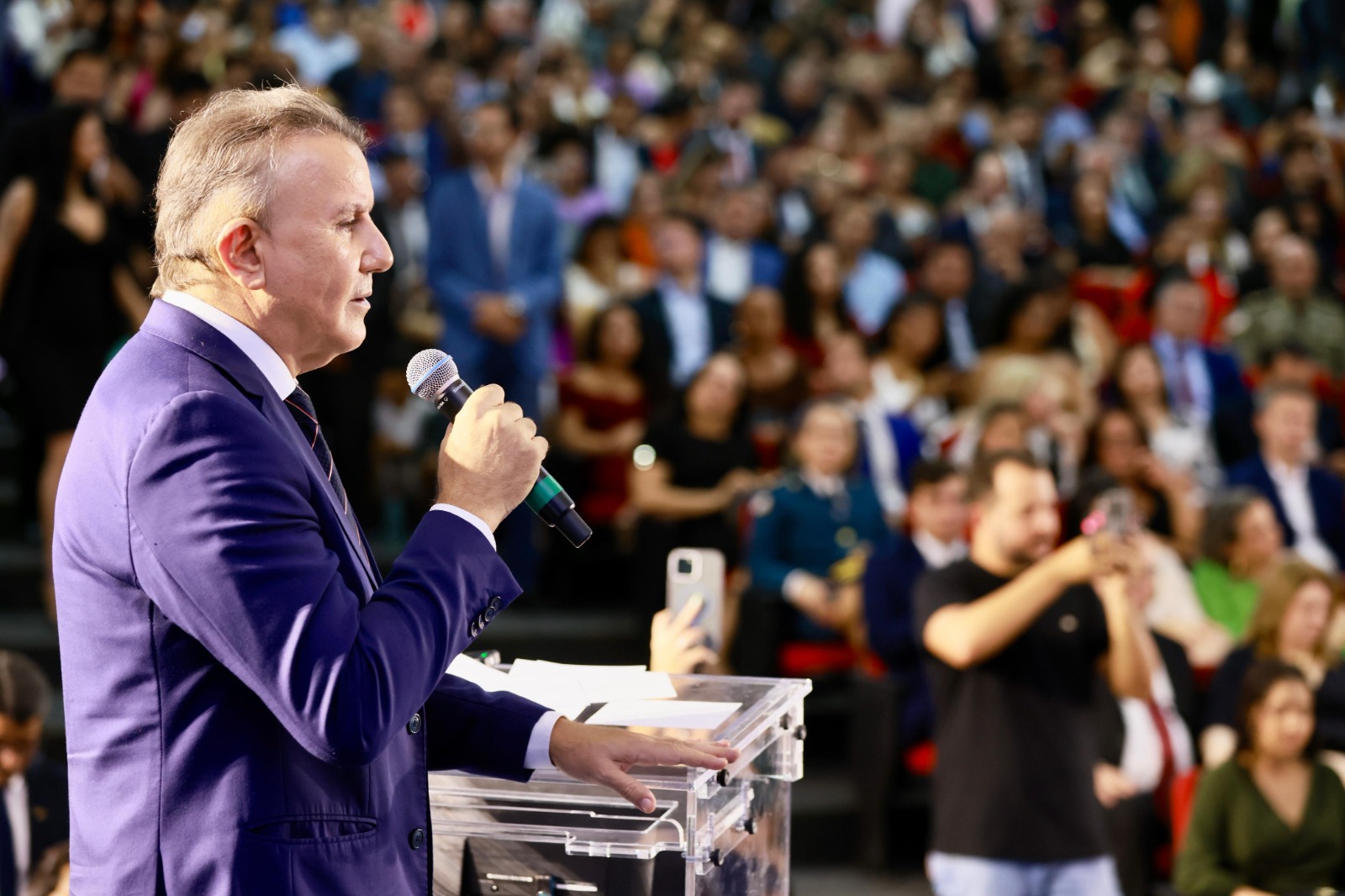 O Centro de Convenções Arnaud Rodrigues recebeu, na noite desta quinta-feira, 20, autoridades e a comunidade jurídica tocantinense para a solenidade de posse da nova gestão da Ordem dos Advogados do Brasil – Seccional Tocantins (OAB/TO) para o triênio 2025-2027. O prefeito de Palmas, Eduardo Siqueira Campos, prestigiou a cerimônia que reconduziu Gedeon Pitaluga à presidência da entidade, ao lado de sua vice-presidente, Larissa Carlos Rosenda.