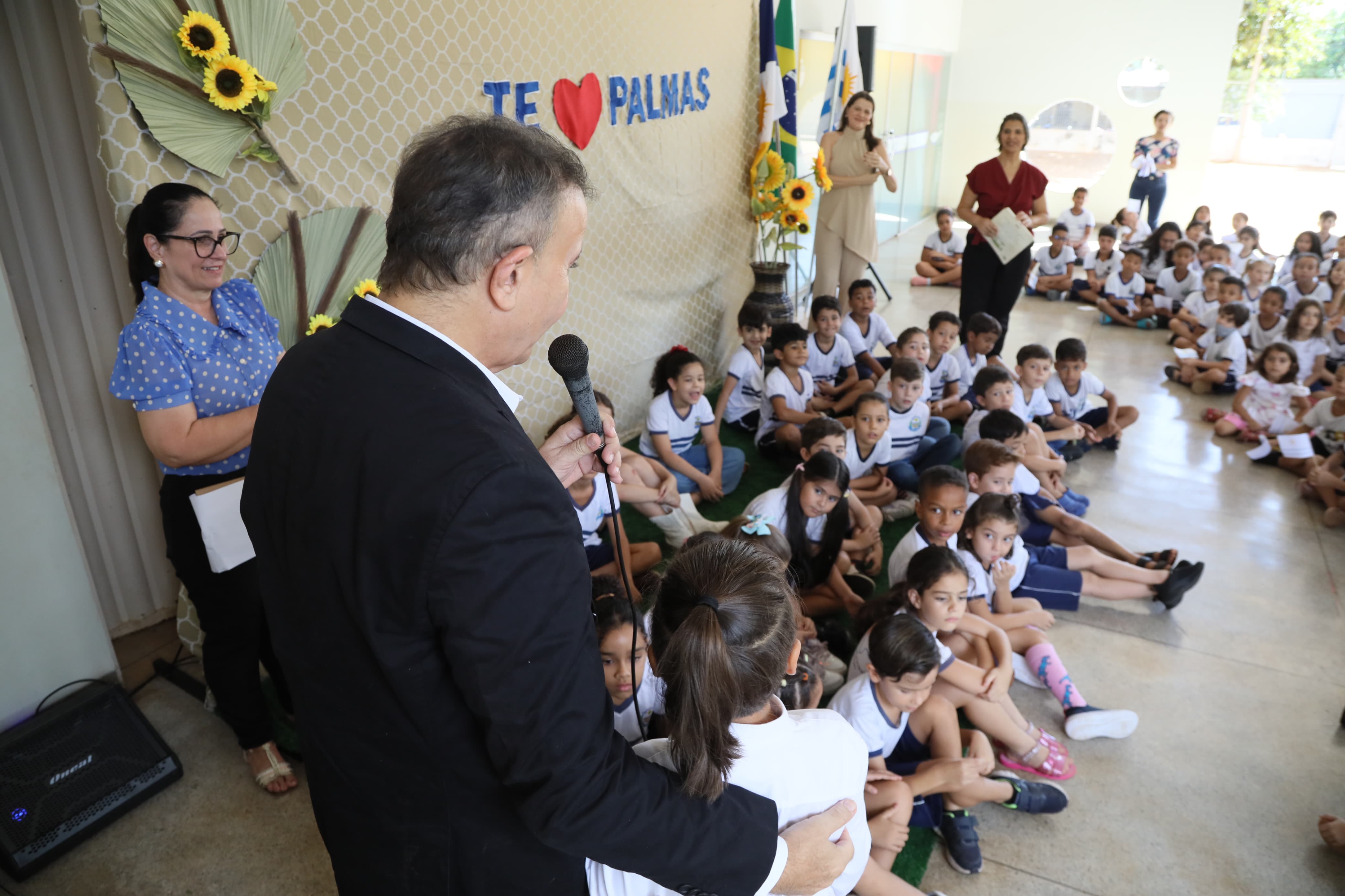 O prefeito Eduardo Siqueira Campos salientou a felicidade em participar da comemoração e destacou o desempenho na execução do Hino Nacional e do Hino de Amor a Palmas. “Vocês podem dizer aos seus pais e mães que o prefeito esteve na escola para olhar tudo que está faltando, para termos a escola dos sonhos de todos nós”.