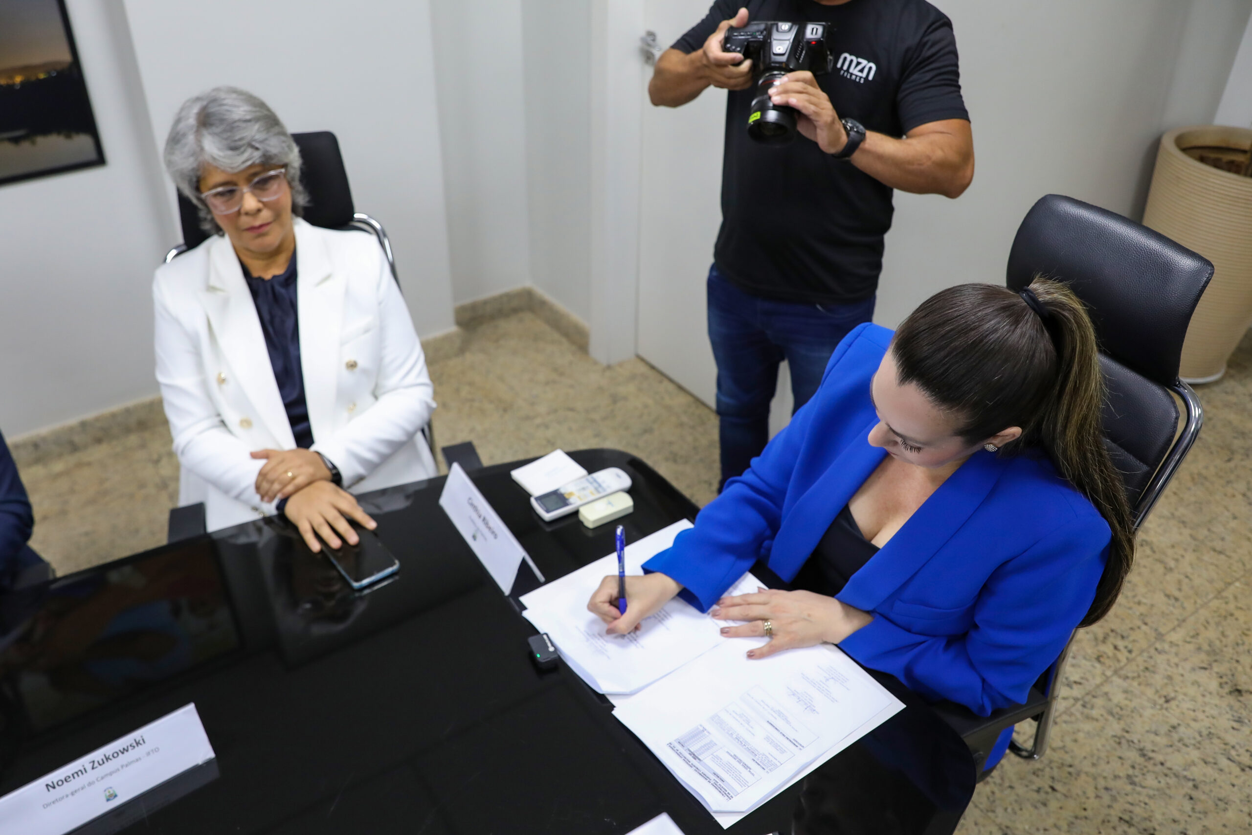 A prefeita Cinthia Ribeiro assinou nesta quinta-feira, 14, o termo de cooperação com o Instituto Federal do Tocantins (IFTO) para a realização do curso de formação da Guarda Metropolitana de Palmas (GMP), com início previsto para segunda-feira, 18 de novembro. A solenidade ocorreu no gabinete da prefeita e contou com a presença de representantes do IFTO, da Secretaria de Segurança e Mobilidade de Palmas (Sesmu), da Secretaria de Planejamento e Desenvolvimento Humano (Seplad) e dos convocados.
