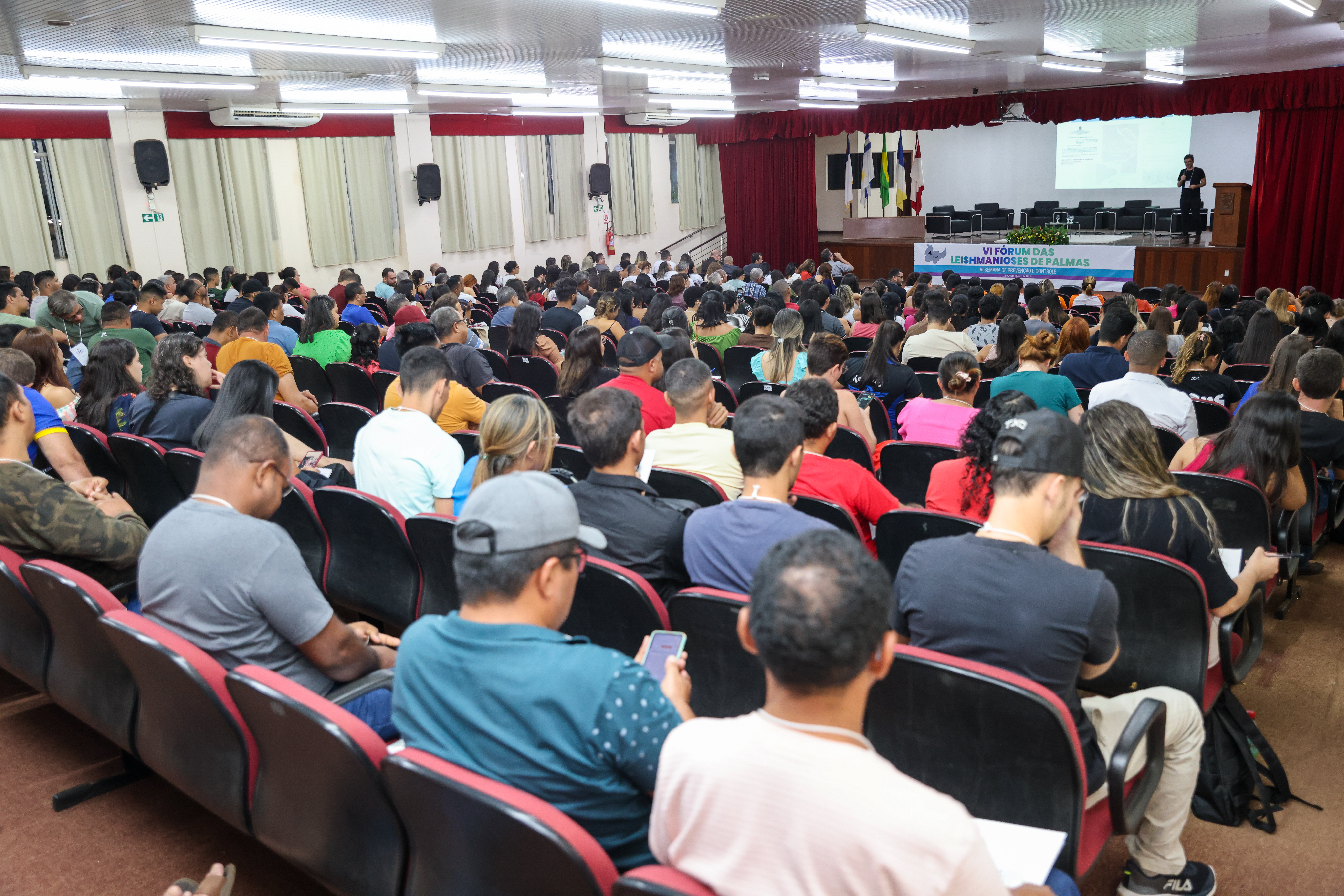 Nos dias 28 e 29 de setembro, a Secretaria Municipal da Saúde (Semus) promoveu o VI Fórum das Leishmanioses e a VI Semana de Controle e Prevenção de Palmas. O evento, realizado no Centro Universitário Luterano de Palmas (Ceulp/Ulbra), reuniu trabalhadores da Saúde do município e de outros estados, comunidade acadêmica, residentes e usuários do SUS para debater temas relacionados às leishmanioses. Durante os dois dias, os participantes puderam acompanhar palestras, mesas redondas, apresentação de pesquisas e discussões sobre as estratégias de combate à doença.