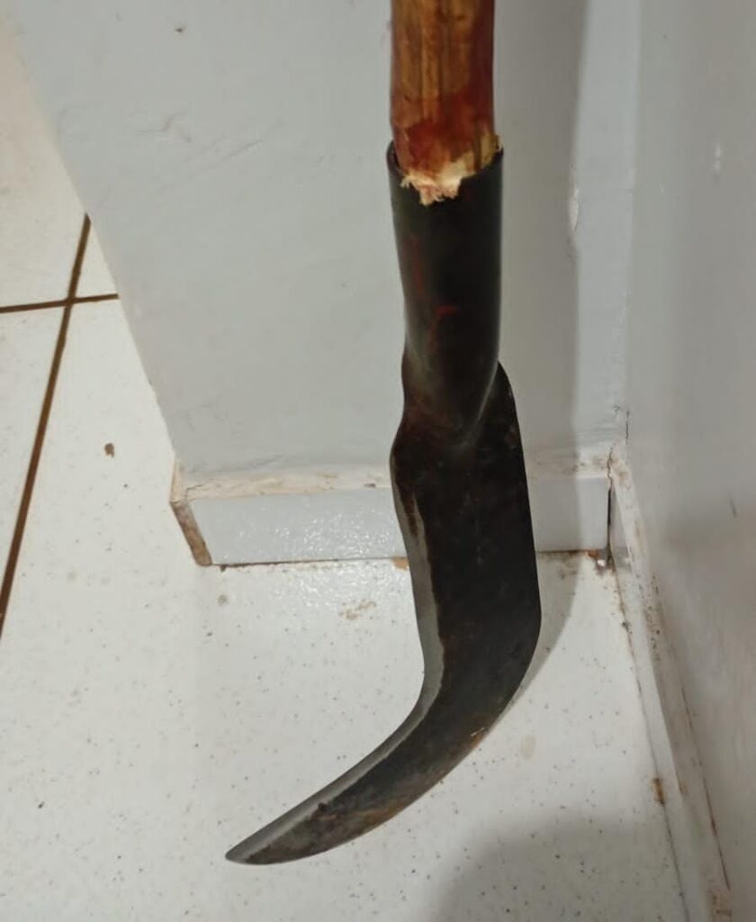 Ao chegar ao local, os agentes encontraram a vítima, L.R.F., com cortes no braço e ensanguentado. Testemunhas informaram que o suspeito havia fugido para uma área de mata, portando a foice usada no ataque. A guarnição iniciou buscas imediatas e localizou o autor ainda com o objeto em mãos.